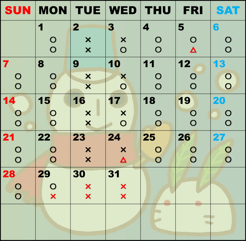 12/5(金)および12/24(水) は健診のため午後の診療開始時間が遅くなる場合があります。